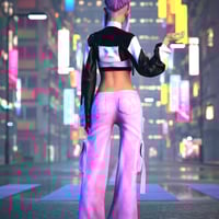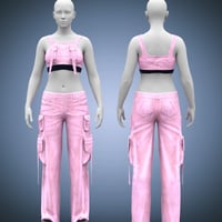 dForce Jellyfish Outfit for Genesis 9 is a pink-and-black K-pop styled streetwear set with cropped layers and cargo details for fashion-forward renders.