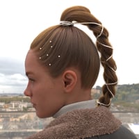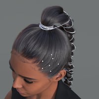 Command elegance and presence with the Diamond Spine Braid Hair — a bold, refined hairstyle that blends structure with luxurious detail. This sculpted ponytail braid is wrapped in silver and diamond-like chain accents, while delicate pearls trace the hairline, adding a graceful shimmer and visual intrigue.
