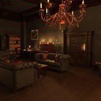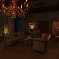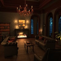 Discover the charm of this stunning Gothic-style mansion, where elegance meets comfort. The grand living room is perfect for relaxing by the fire or hosting gatherings. High ceilings, rich wood paneling, and a beautiful chandelier set a luxurious tone, while large arched windows allow soft moonlight to fill the room. Cozy leather sofas surround a low table, with shelves of antique books adding a touch of mystery. Every detail, from the warm fireplace to the candlelit ambiance, creates a unique and enchanting atmosphere. This mansion is a true sanctuary for those who love timeless style and sophistication. Includes 68 props.