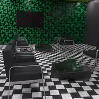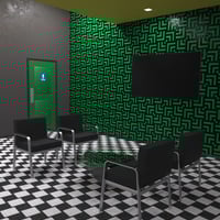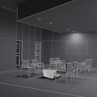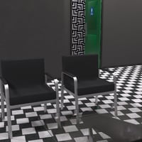 Waiting Area features a vignette interior room scene with bathroom doors, chairs and coffee tables, Optimized for Studio with Iray.